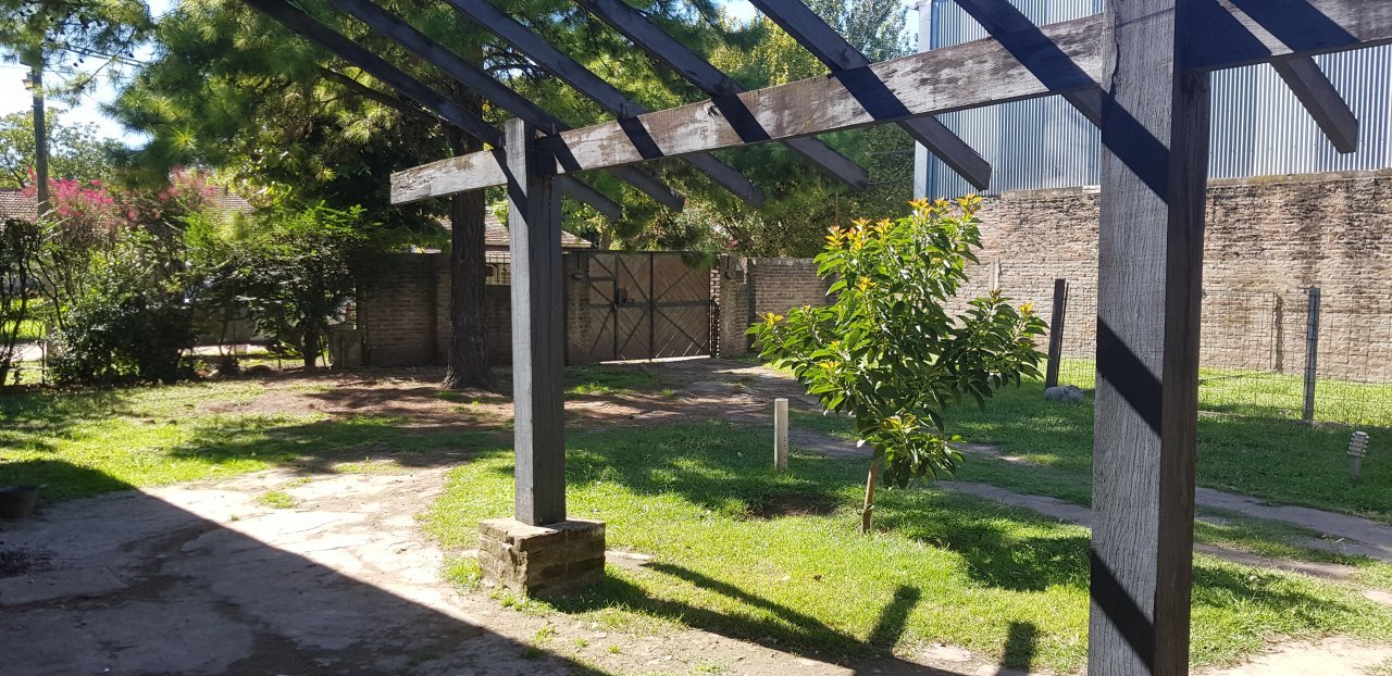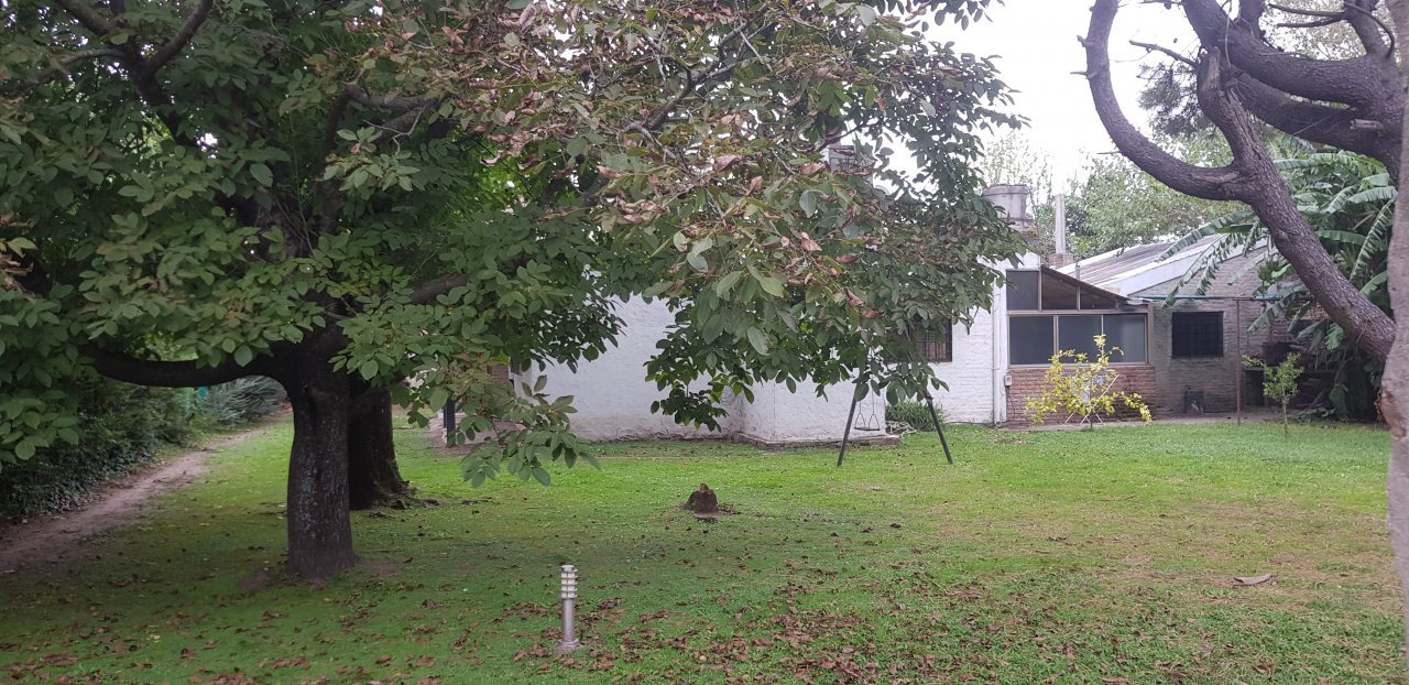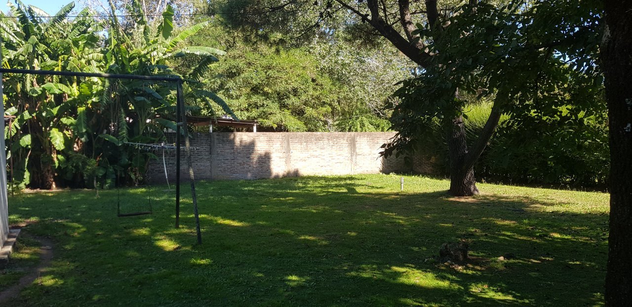 Gran terreno libre, parquisado, con arboles y plantas frutales, sector de parrilla, cerco perimetral, pared y porton de ingreso peatonal y de vehículos. Ademas cuenta con sector de caniles.