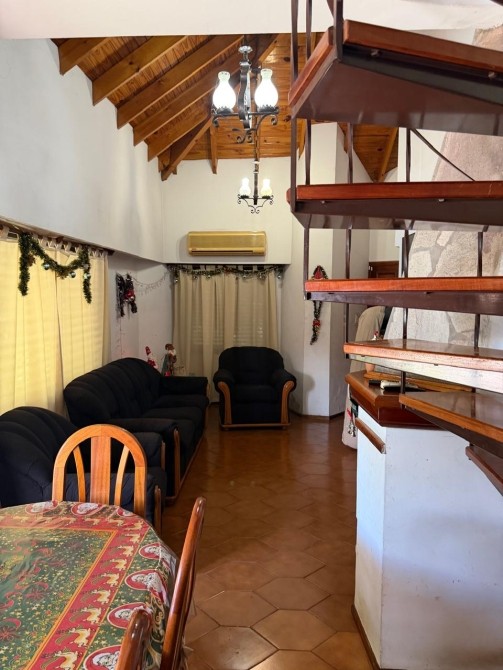 LIVING COMEDOR con ventanales vista al jardin, aire accondicionado, hogar a leña, altillo con acceso por escalera caracol ideal tercer dormitorio o cuarto de estudio.