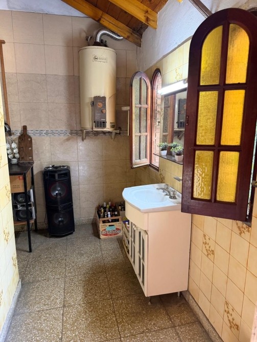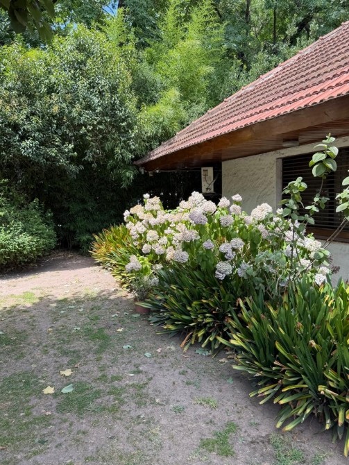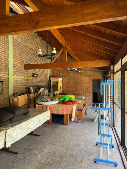 GRAN QUINCHO con pisos mosaicos, parrilla, bajo mesada, baño y ventanales a la vista y cabreadas en madera.