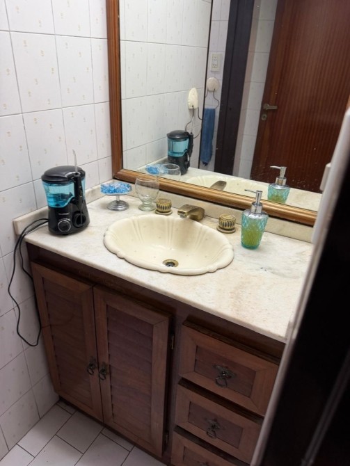 BAÑO COMPLETO con sanitarios, revestimiento ceramicos, bañera, mampara y antebaño.