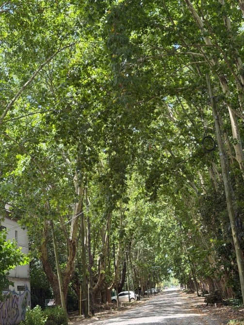 GRAN TERRENO LIBRE parquizado, con luminarias, plantas y arboles.