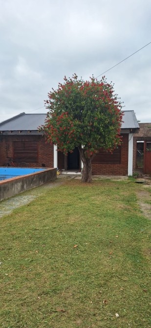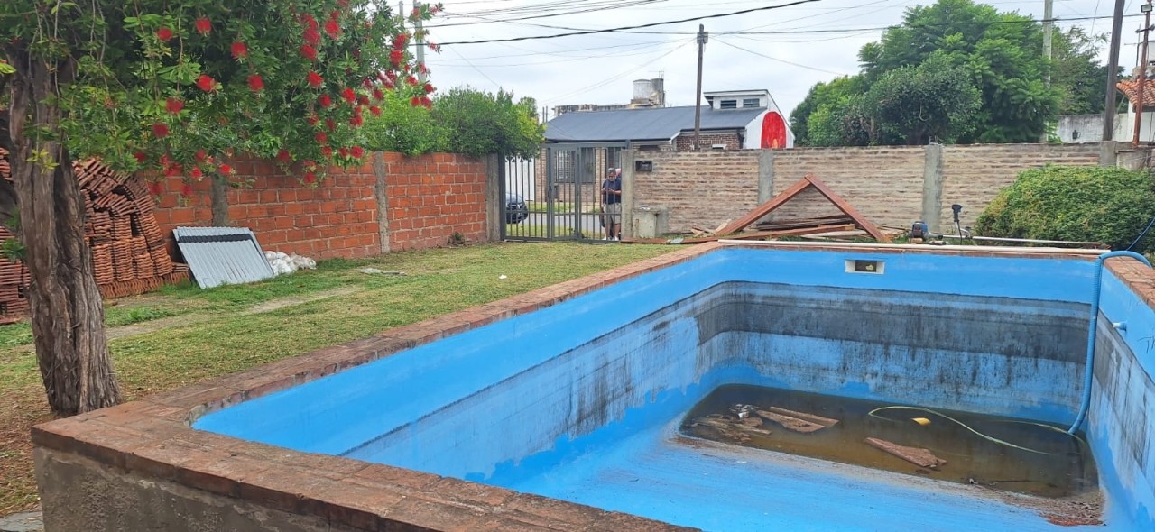 Casa de material, techos de chapa nuevos (hechos en en enero 2026); pisos de cerámicos, sólida construcción, con amplio terreno libre y pileta de natación de material.