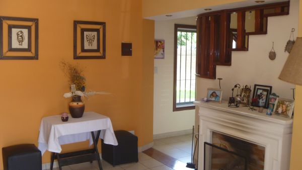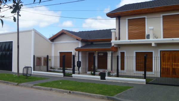 DESCRIPCION: CATEGORICO CHALET compuesto por Living amplio con hogar a gas y hermosa escalera en biraró macizo de acceso a planta alta, cocina comunicada con comedor diario, horno empotrado y anafe, amoblamientos a medida con isla central, en algarrobo tanto en la cocina como en el comedor, garage cubierto con portón en cedro macizo, oficina o sala de estudio, 2 dormitorios, 2 baños totalmente instalados con bañera e hidromasaje, cuarto de enseres, PA: amplio dormitorio con vestidor, baño en suite y ante baño, balcón. Garage lindero con entrada P/Varios vehículos (Inclusive camionetas o motor home) con portón de hierro, fondo Quincho a terminar de 20 x 6 (Aprox) de 2 plantas. Terreno de 22 x 38, con espacios libres, frente con jardín, rejas artísticas, sistema monitoreo. Detalles de Categoría en toda la Casa. Excelente Carpintería en Gral. con aberturas y persianas barrio. Pisos Porcelanatto en toda la casa. Detalles de Yesería e iluminación empotrada en toda la casa. Antigüedad 2 años. “DIGNA DE VER”.- Se vende con calefactores, aires acondicionados, iluminación y otros artefactos.- Zona residencial con comercios, colectivo local (Línea 501), colegio, jardines, etc. en alrededores.- Por su distribución, instalaciones, calidad de materiales y terminación se considera unos de los mejores Chalets del Barrio Los Alamos.-