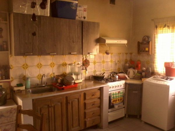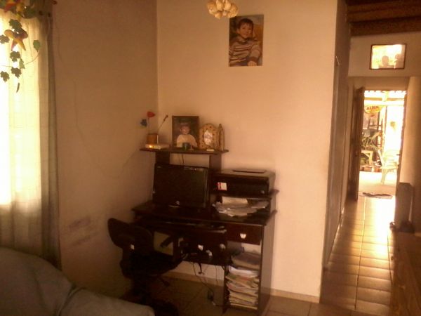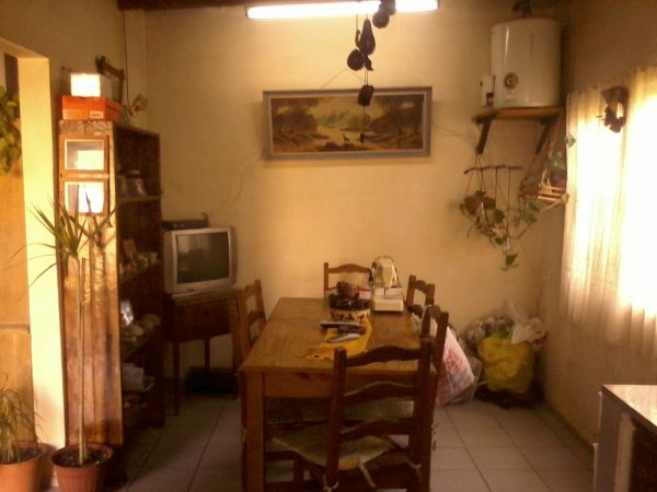 Casa de material, consta de living o recibidor de 4,00 x 2,50 mts, cocina-comedor de 5,50 x 3,00 metros, pisos ceramicos, alacena, bajo mesada; agua caliente y fria; termotanque electrico, pasillo central, dormitorios de 3,00 x 3,00 metros con pisos ceramicos, dormitorio de 4,50 x 3,00 metros con pisos ceramicos, baño de 3,00 x 1,50 totalmente instalado, dormitorio; galeria con patio al fondo, fondo libre, galponcito para guardar cosas, tejido alambre; arboles frutales y diversas plantas. Gas Natural por el frente, Agua por medio de moto bombeador.