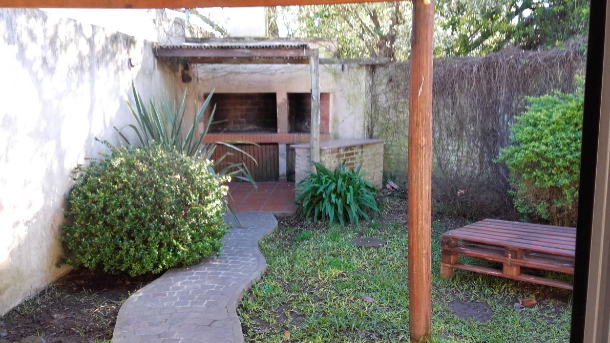 Hermoso chalet en optimo estado compuesto por Living amplio con ventanales al frente, cocina comedor con modernos amoblamientos a medida, baño totalmente instalado con antebaño, lavadero interno, 2 dormitorios con placard, galería garage cubierto, patio interno, fondo libre con cesped, parrilla, pared perimetral.