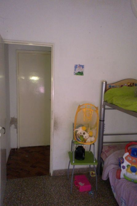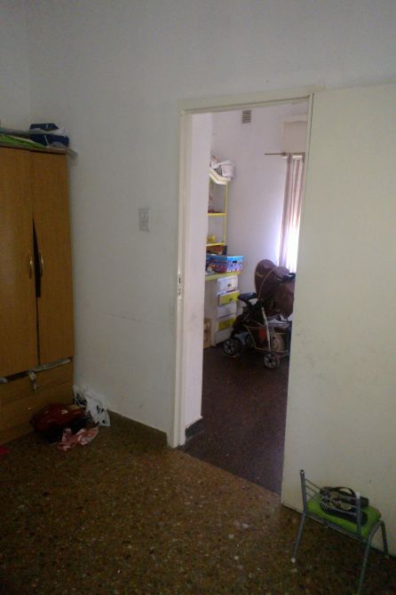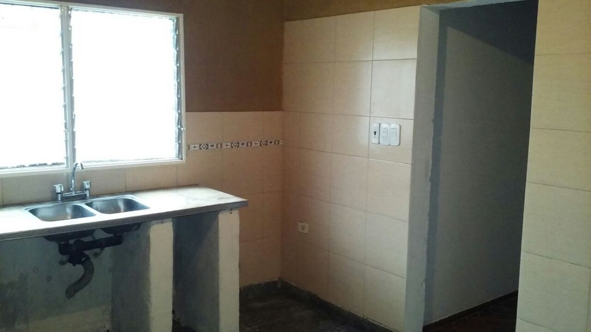 Casa Apta Credito de Material compuesta por: living de 3,45 x 2,00 mts, dormitorio de 3,60 x 3,45; cocina de 3,15 x 2,40 mts, pasillo central; baño de 2,40 x 1,55 mts; dormitorio de 3,75 x 3,00 mts. Galeria, patio y al fondo cuarto lavadero y garage de 2,70 x 10 mts. Solidas paredes, techos de losa, terreno libre, rejas al frente y en todas las aberturas; pisos mosaicos.