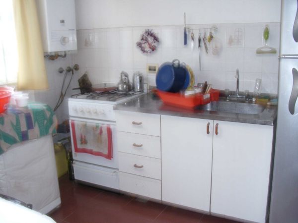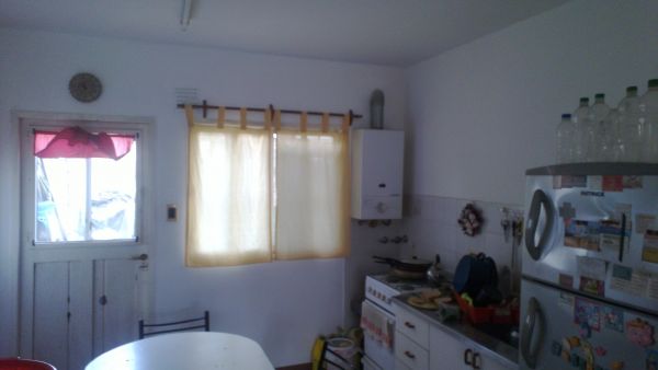 Cocina comedor: unificado al living; con bajo mesada, cocina, calefon, mesada de acero, calefactor.