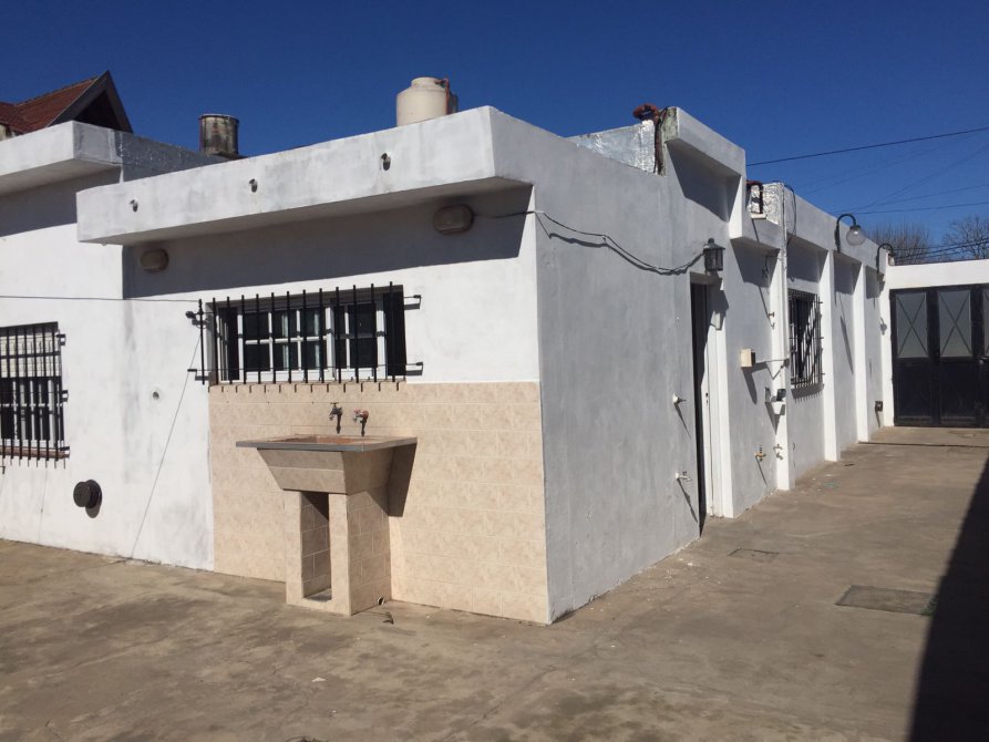 Amplia casa de material, compuesta con tres dormitorios, uno con placard y dos con calefactor t/b. Pasillo central, baño instalado, living amplio con calefactor t/b, cocina comedor con mesada y termotanque. Patio con parrilla, lavadero exterior, entrada pasante de vehiculos. Fondo depto o quincho de 70 mts2 con pisos y paredes con revestimientos ceramícos, cocina, baño totalmente instalado con antebaño, amplio espacio para usar como quincho o posibilidad en dividir en dos dormitorios.