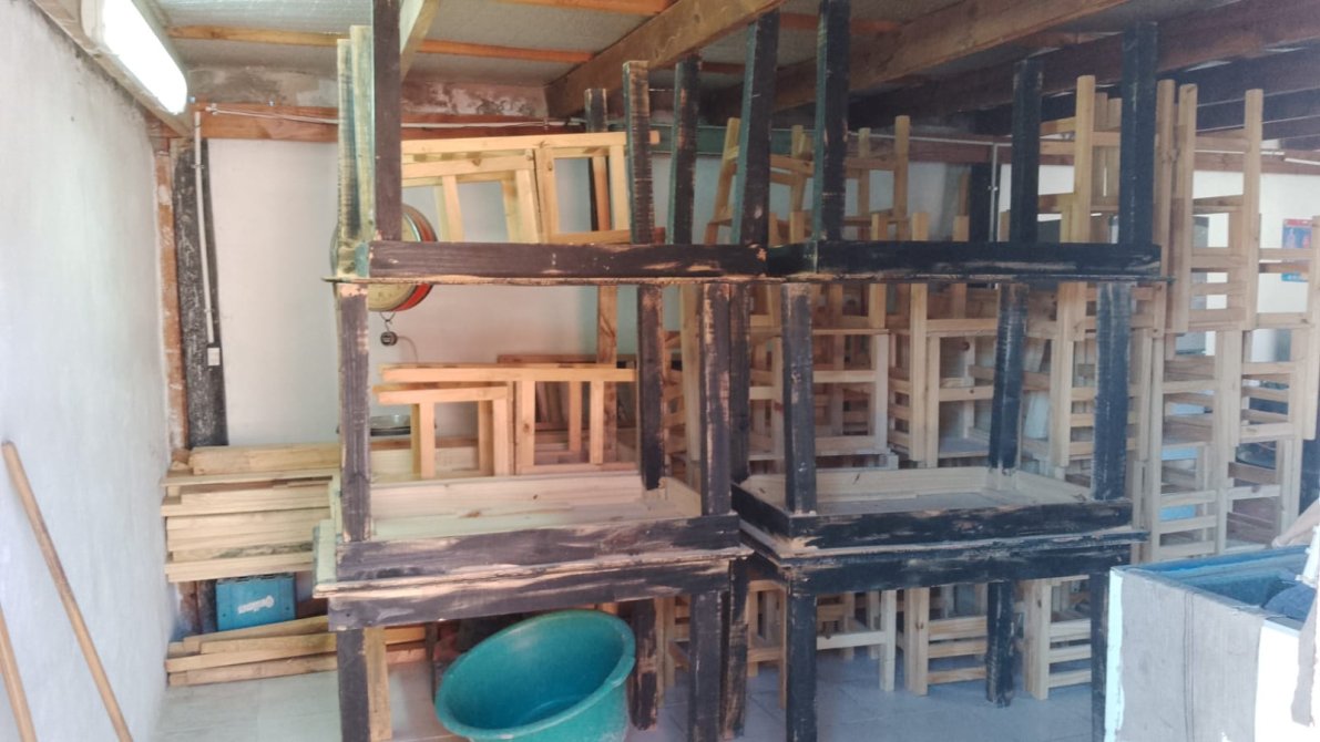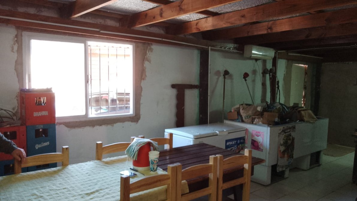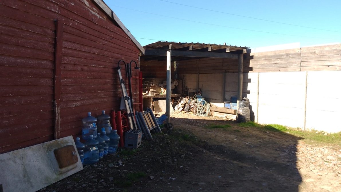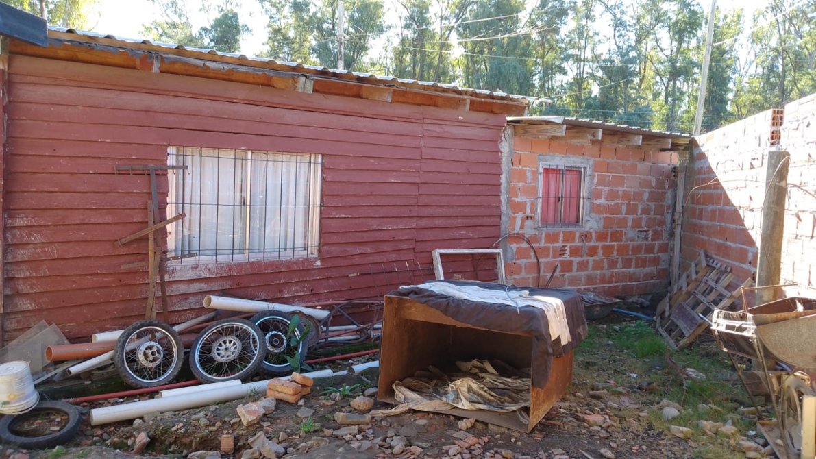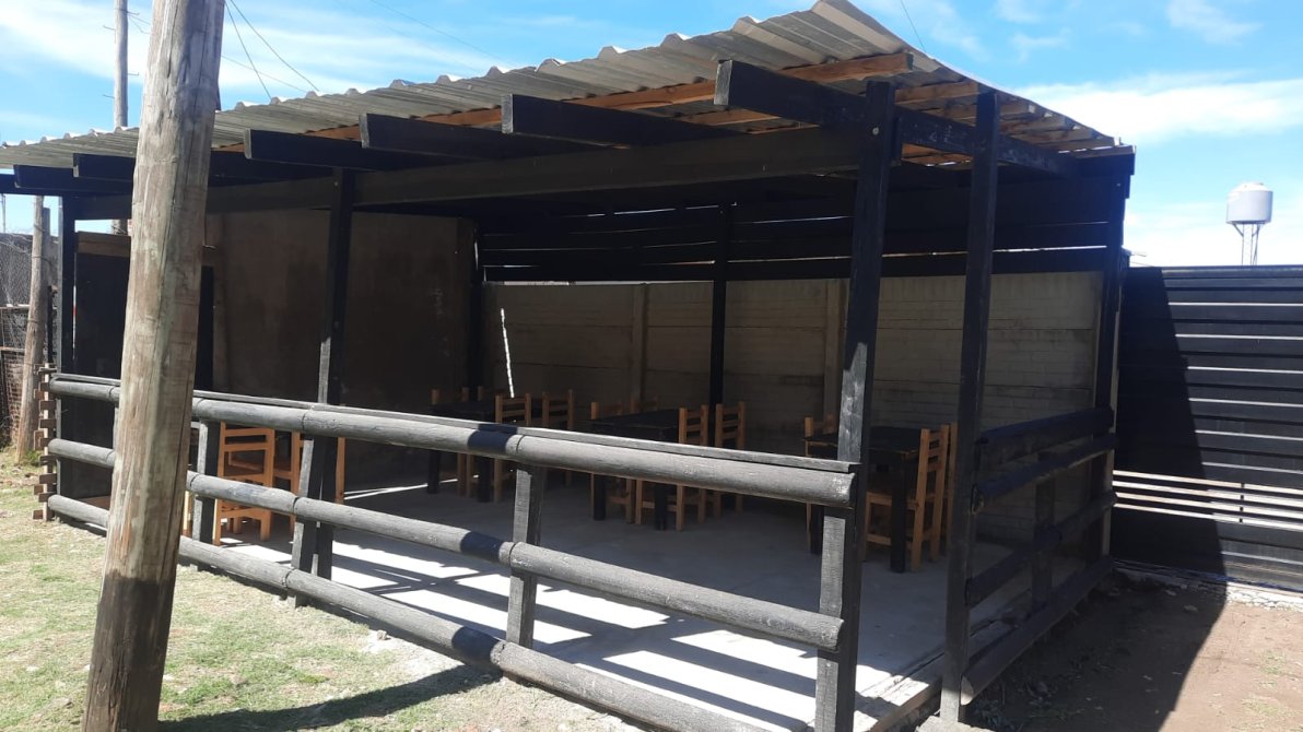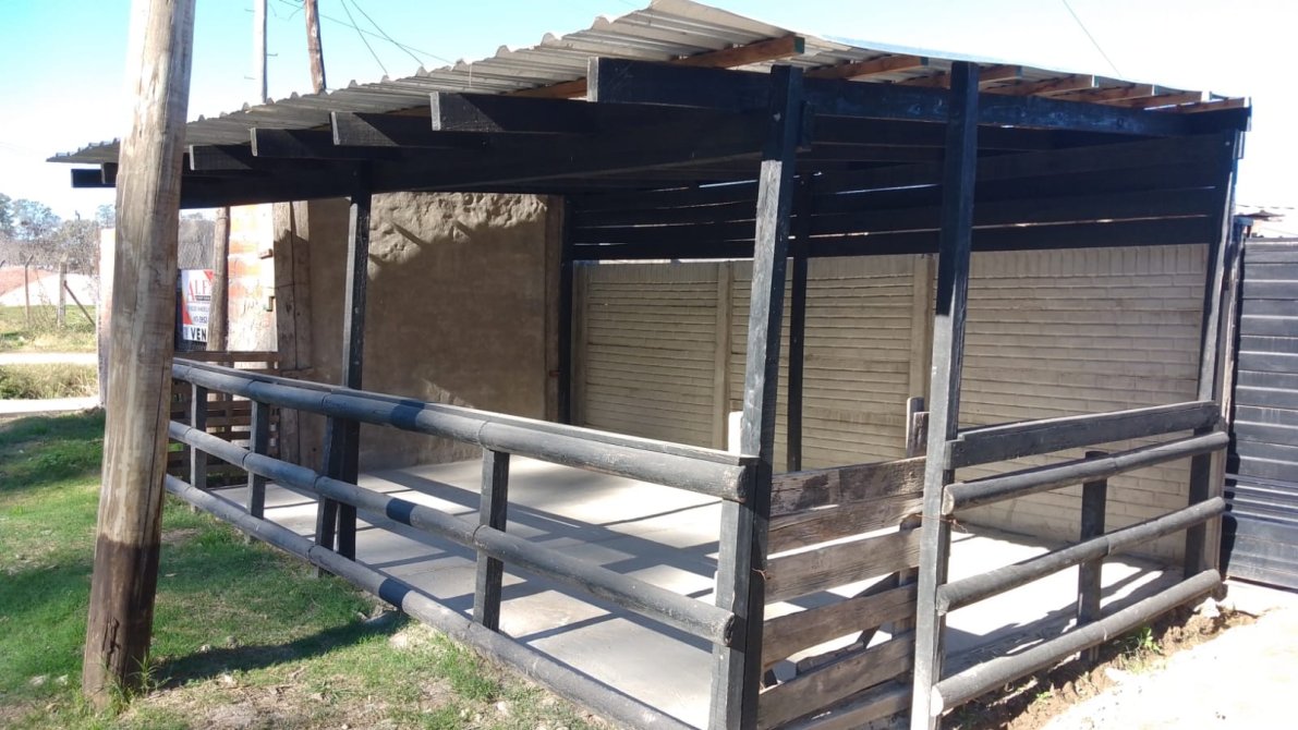 Pared perimetral, pisos con contrapisos de 12x4 mts, parrilla, construcción de 16x5 mts de material, pisos de cerámicos, techos de chapa.-