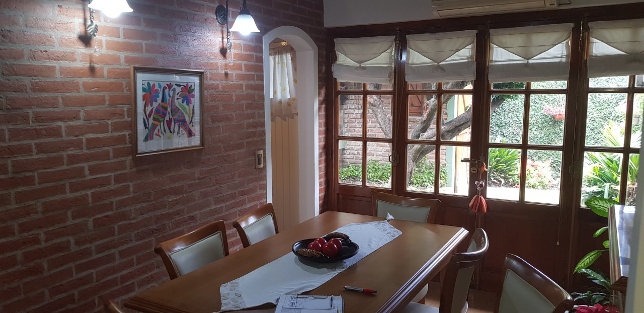 * Comedor Diario con detalles de revestimientos, cielorrazos en madera, ventanal con vista al jardin del contrafrente. -