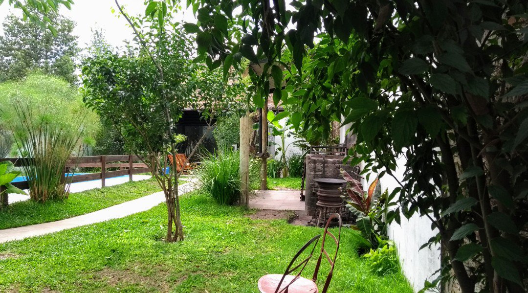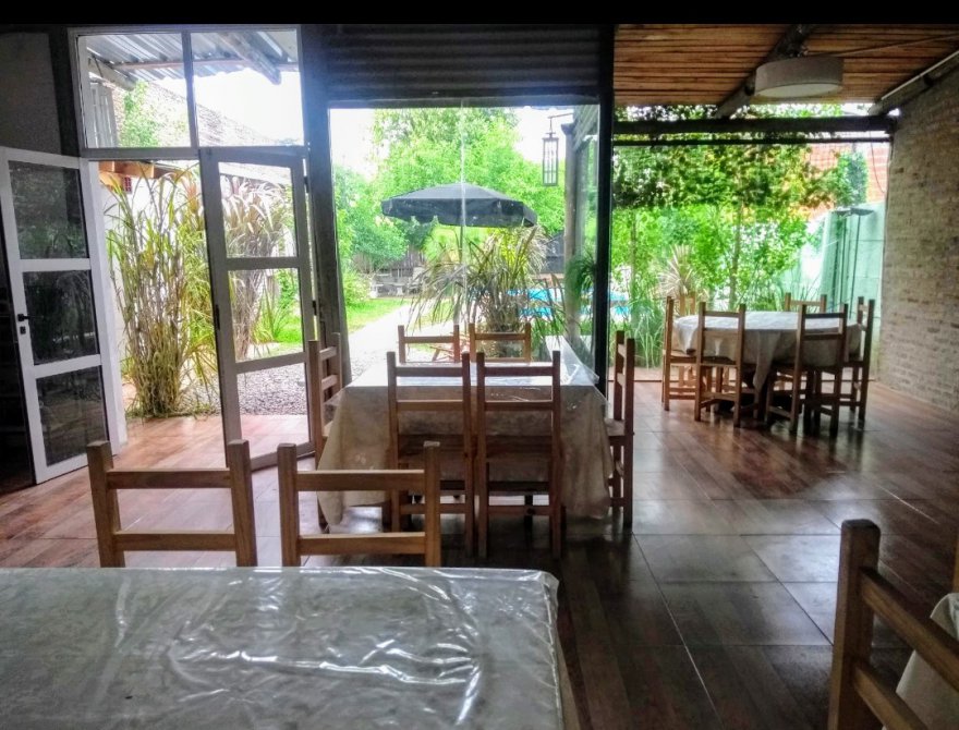 COMPUESTO POR UNA EDIFICACIÓN TIPO QUINCHO, ESTILO CAMPO, CON PISOS PORCELANATO, PAREDES DE MATERIAL CON MAMPOSTERIAS, TECHOS DE CHAPA CON CIELORRAZOS EN MADERA. FRENTE CON VISTA AL JARDIN DE BLINDEX Y DOBLE PUERTA EN ALUMINIO BLANCO, CON ILUMINACIÓN, MESADA E INSTALACIONES DE COCINA Y HORNO (ARTEFACTOS A CONVENIR)