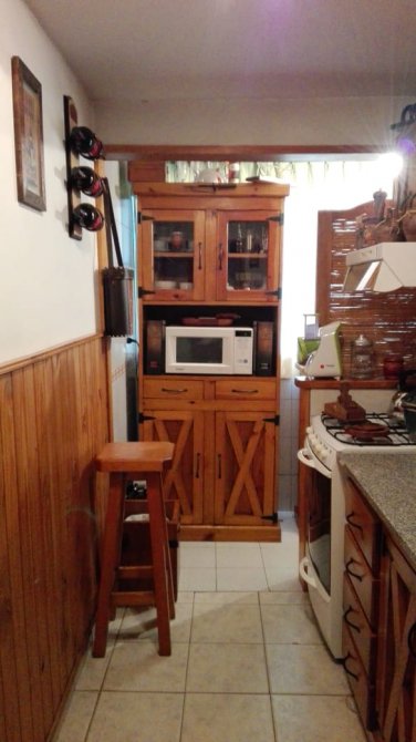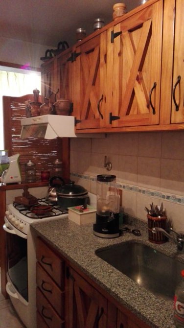 - COCINA TIPO KICHENETTE CON AMOBLAMIENTOS EN MADERA MACIZA ESTILO CAMPO, MESADA DE GRANITO