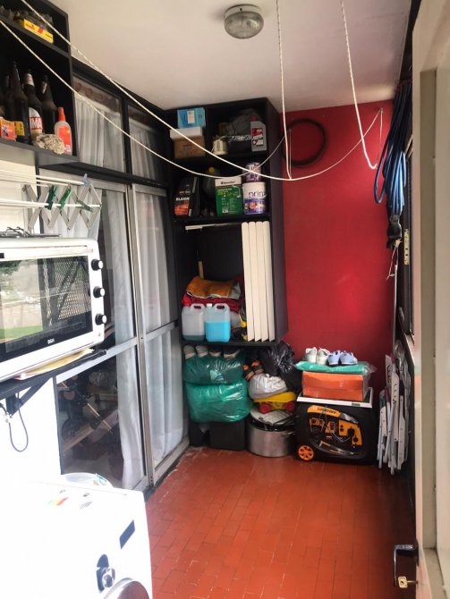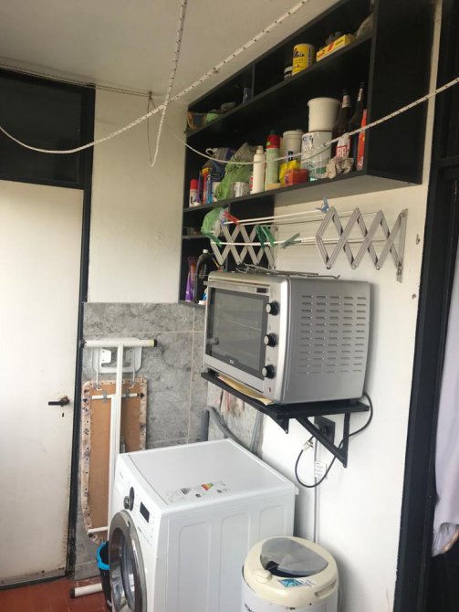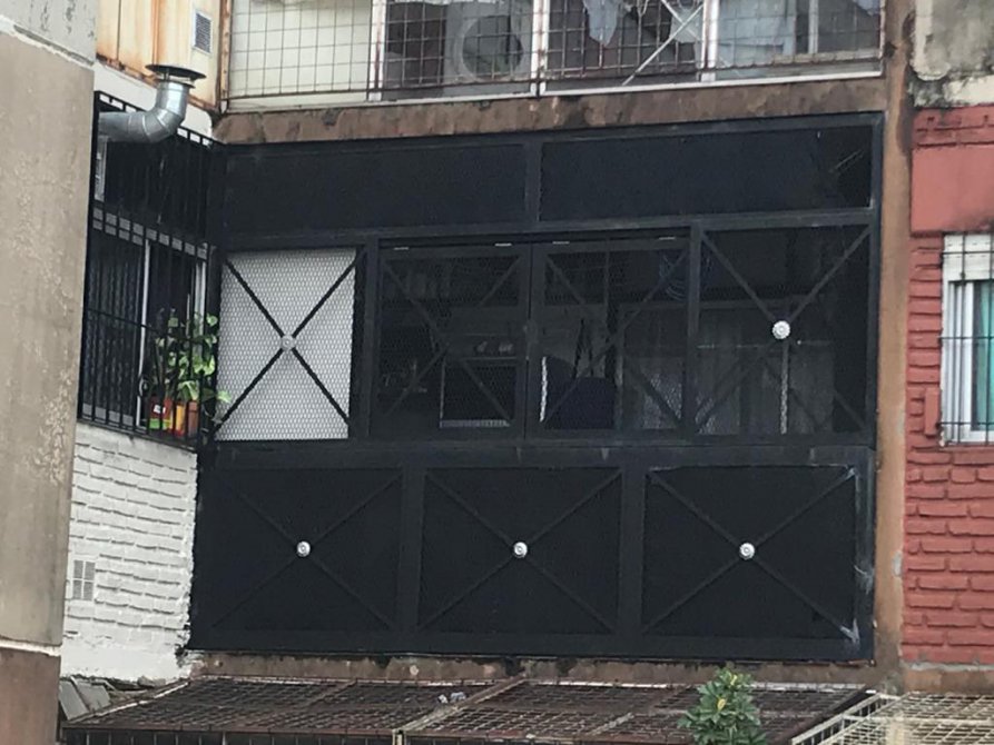 Balcón tipo galería con cerramientos realizados en herreria artisitica en el cual se encuentra instalado el lavadero