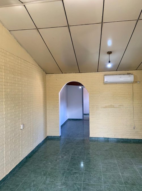 Un amplio living en la entrada de la vivienda con un pasillo distribuidor . Cocina con amoblamientos en madera, seguido se encuentra el comedor. Baño con sanitarios, lavatorio y bañera todo con revestimiento mosaicos. Dos dormitorios (uno con aire acondicionado). Garage cubierto para un vehiculo